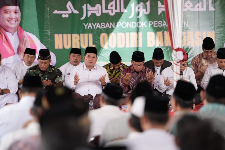 Suak Tapeh – Bupati Banyuasin Dr. Askolani, SH MH melaksanakan kegiatan Yasinan dan Doa Bersama Pembangunan Yayasan Pondok Pesantren Nurul Qodiri Banyuasin (NQB) yang berlokasi di Desa Tanjung Laut, Kecamatan Suak Tapeh, Kabupaten Banyuasin, Jumat (19/12/2025).